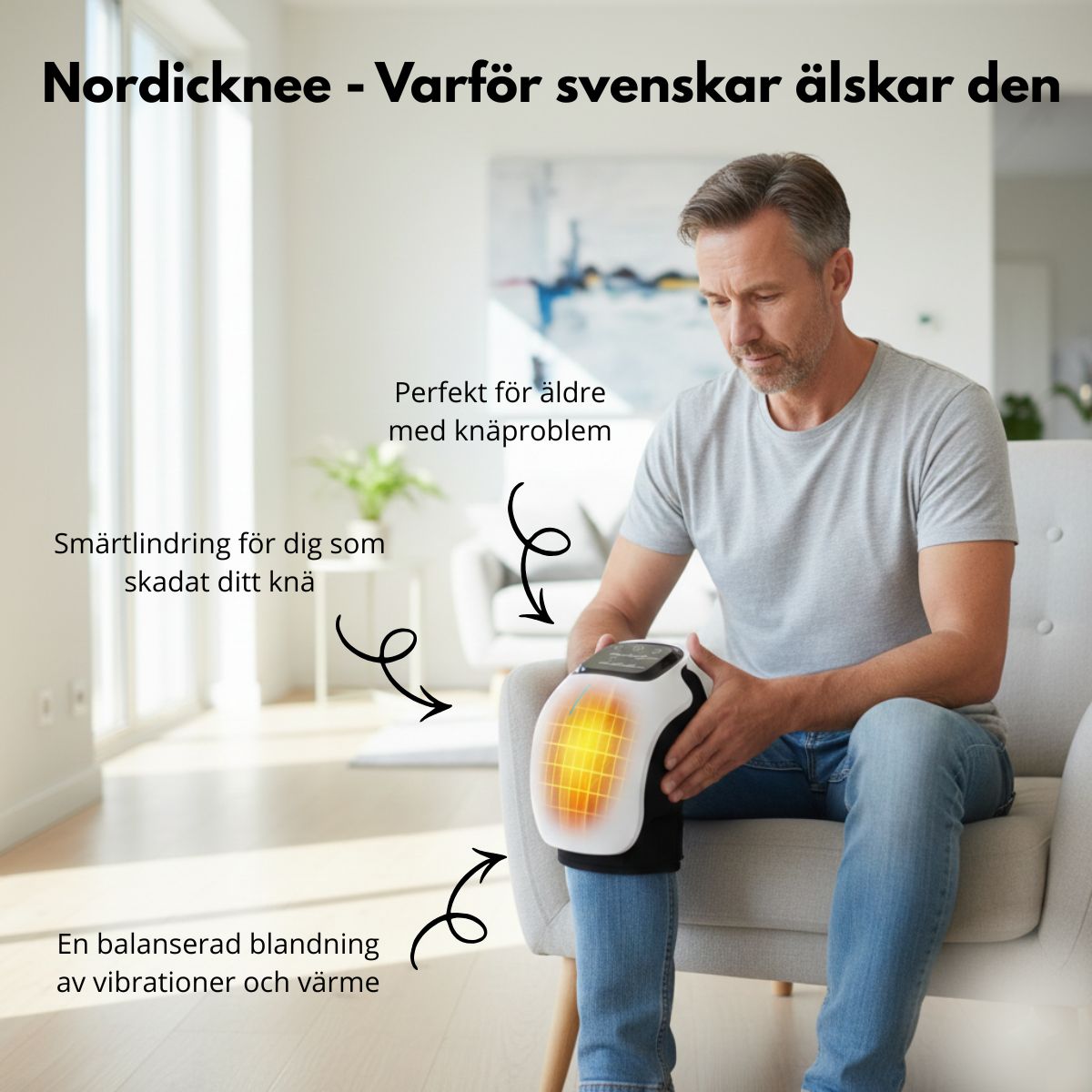 Trötta eller stela knän? NordiKnee ger en effektiv, trådlös massage som lindrar smärta, minskar stelhet och återställer rörligheten – hemma, när du behöver det som mest.